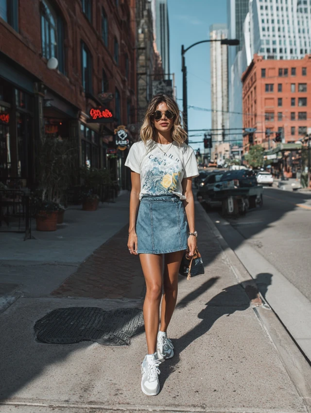 - Tops: Lightweight blouses, graphic tees, or fitted camis.