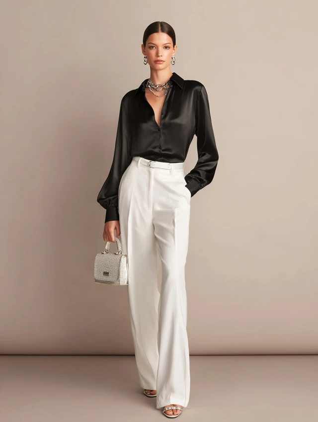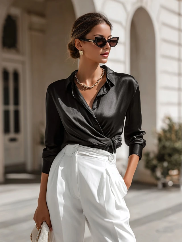 Black pairs seamlessly with everything—white for contrast, denim for casual, or bold hues for a pop of personality. Satin and silk add evening elegance, cotton feels casual, and lace creates a romantic twist.