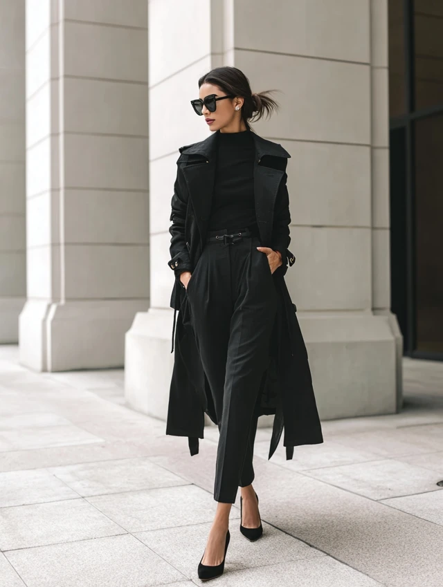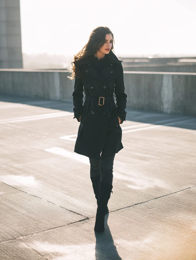 The black trench coat is for women who love timeless fashion that adapts. It’s versatile, chic, and always powerful.
