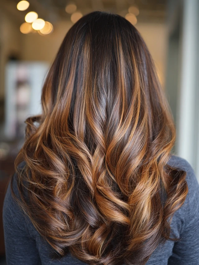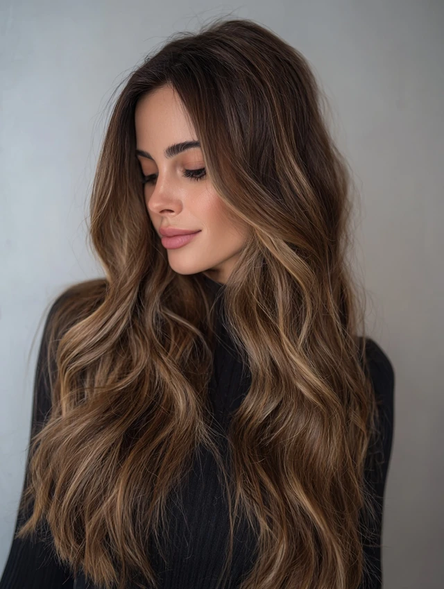 Balayage keeps the color soft and natural, while deep lowlights add richness and contrast for a luxurious finish.