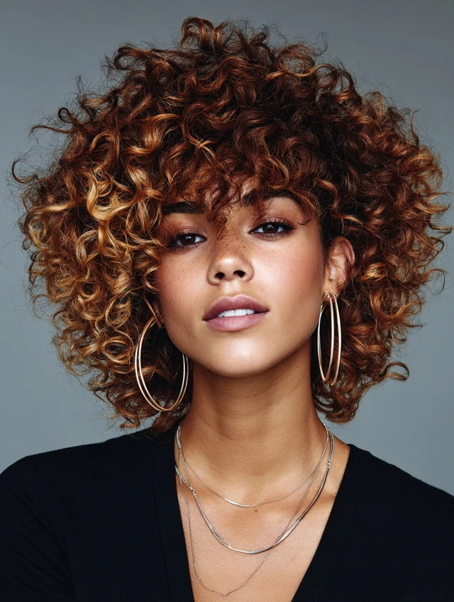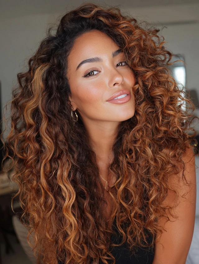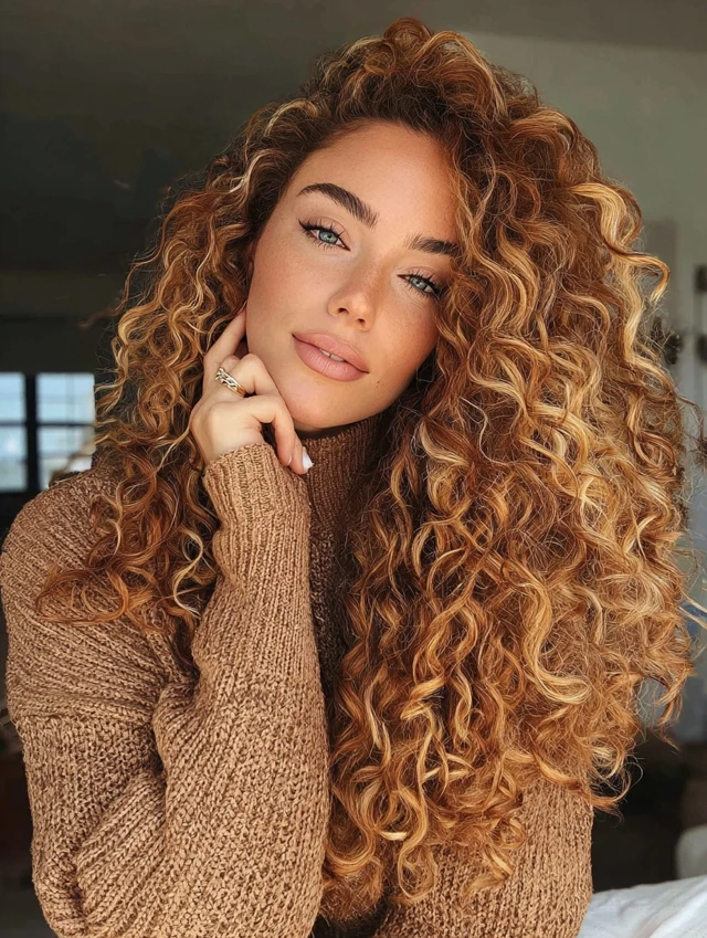 5. Curly Caramel Hair with Defined Money Piece