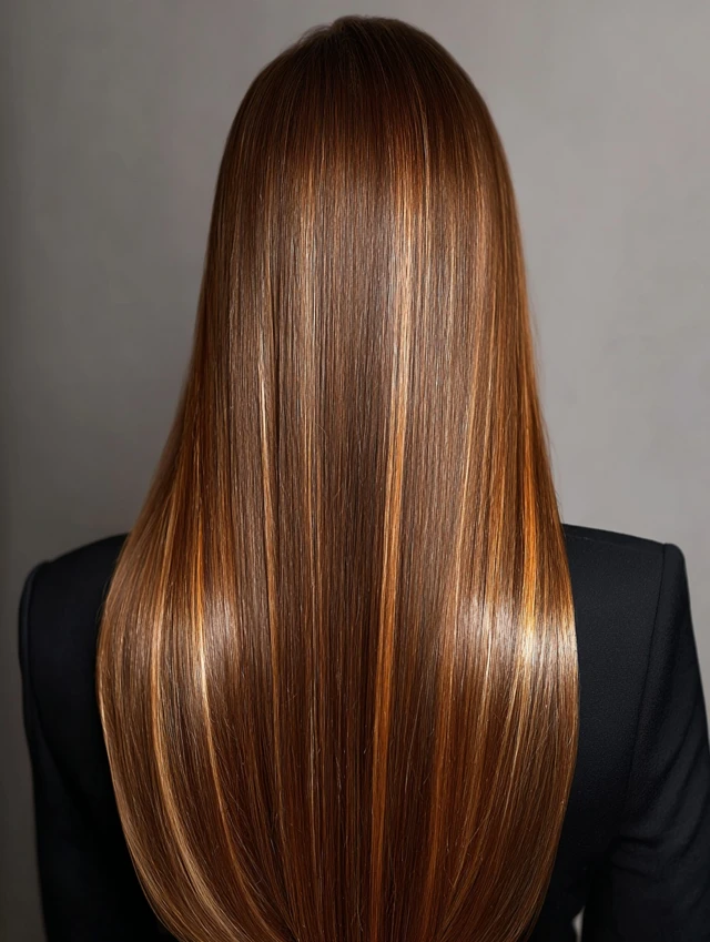 3. Sleek Straight Caramel Hair with Money Piece