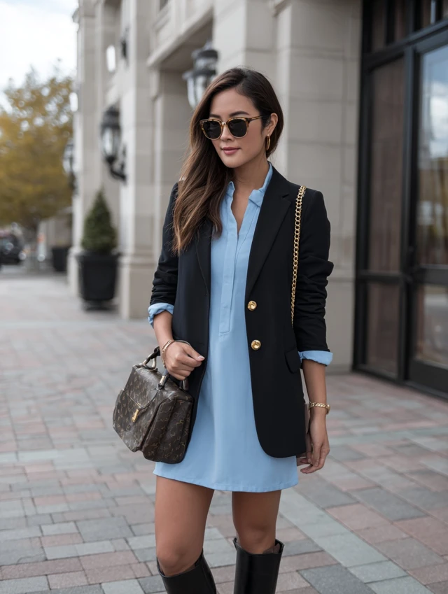 - Layer with a cropped blazer or trench.