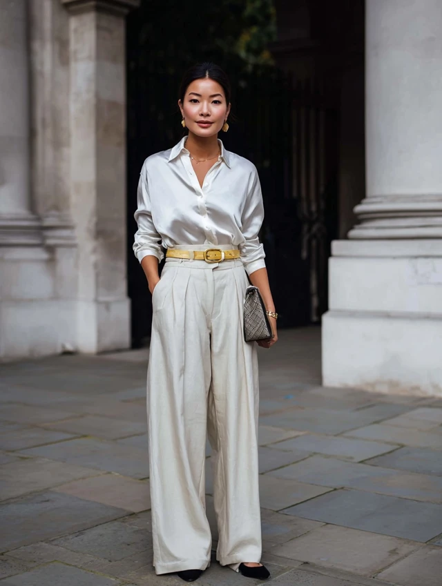 - Add a silk blouse for a touch of luxury.