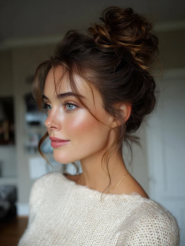 This bun gives a soft, relaxed, and slightly elegant look — perfect for everyday wear.