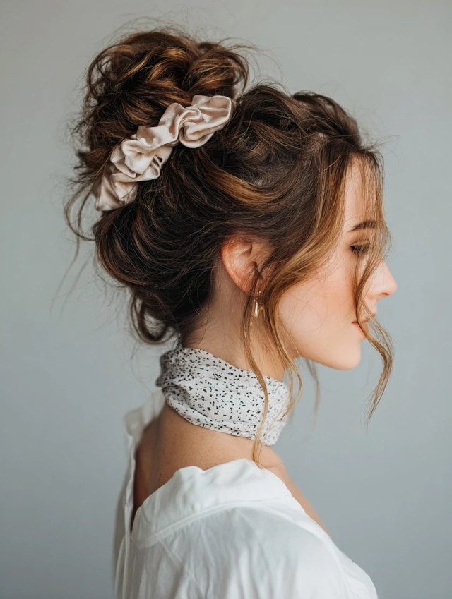 A scrunchie instantly adds volume and style while keeping the bun secure.
