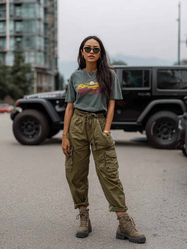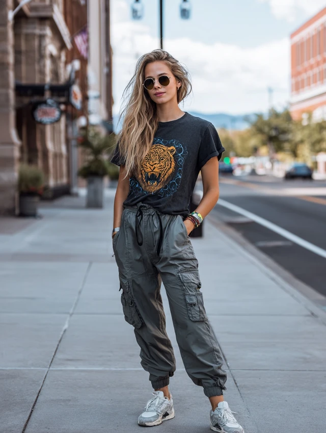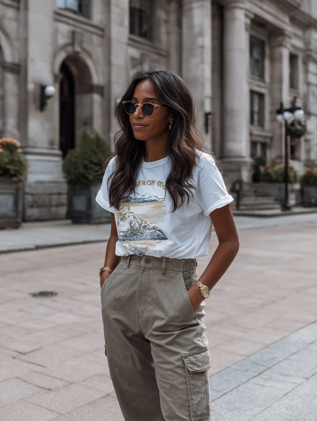 - Relaxed Tops: Oversized tees, cropped sweaters, and button-downs.