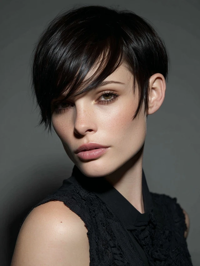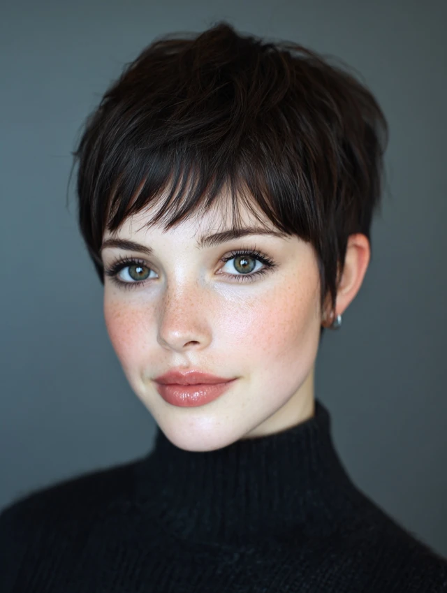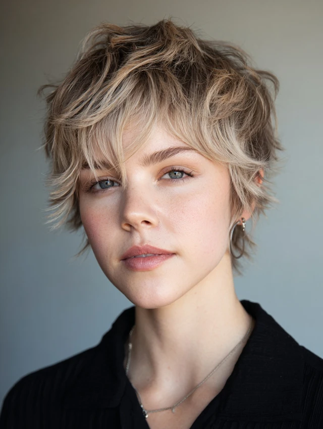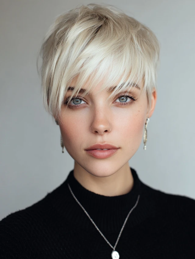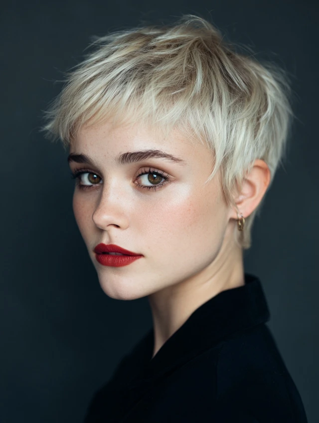 Longer front pieces in a pixie cut add softness and highlight facial features beautifully.