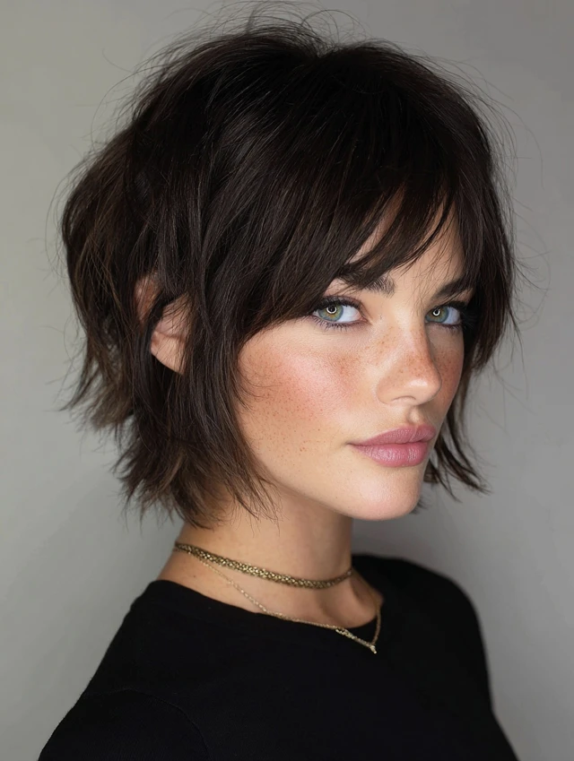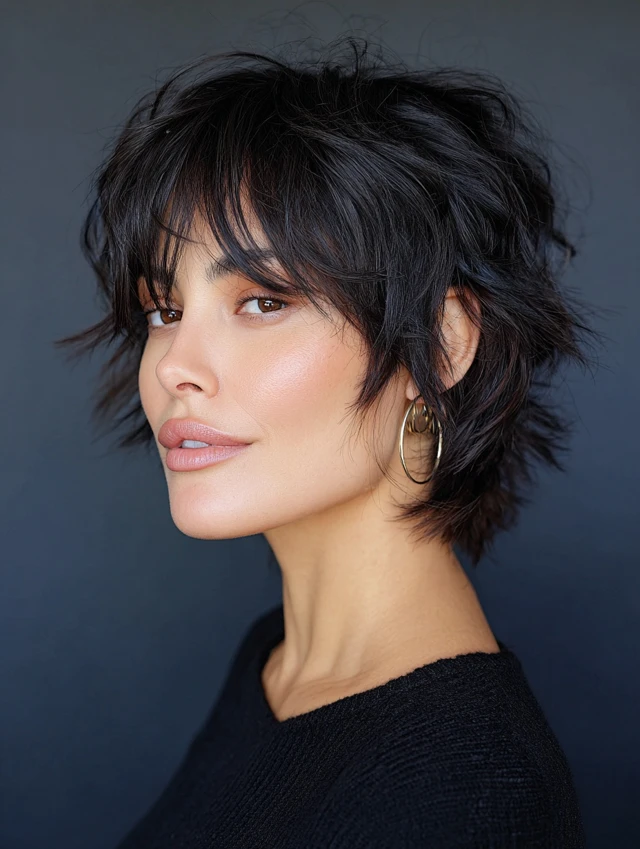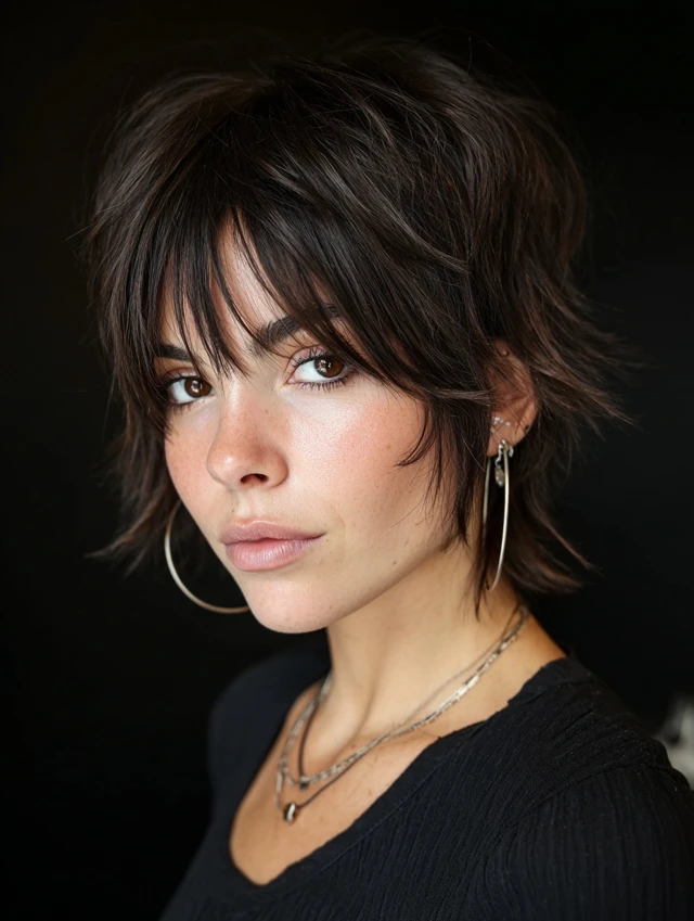A shag cut adds volume and edge, while face-framing layers soften the overall look.