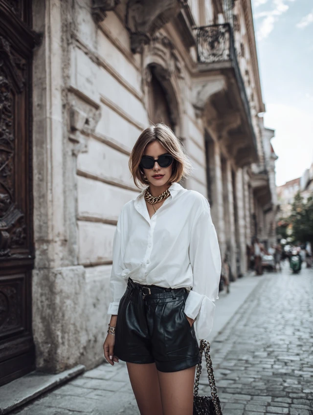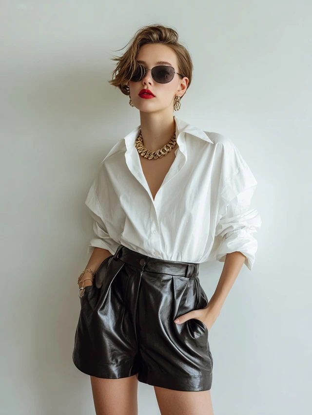 Leather shorts are all about attitude. They already bring boldness, so styling them with intention—whether soft, structured, or edgy—makes them shine. Confidence is the finishing touch that makes the look complete.