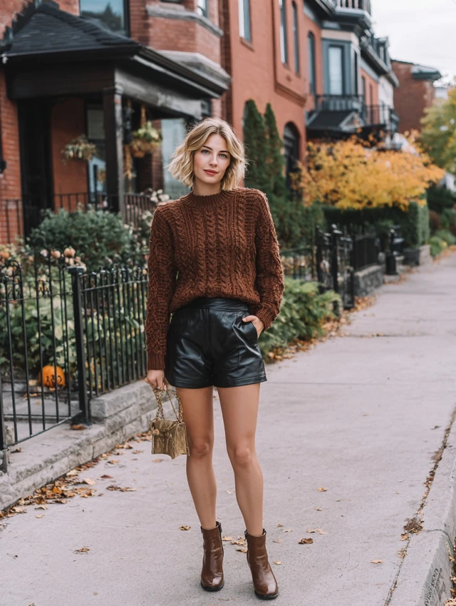 4. Leather Shorts + Knit Sweater + Ankle Boots