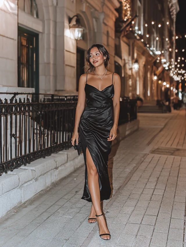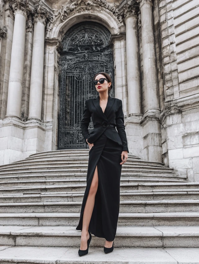 The long black dress is about wearing simplicity with power. Since it’s a clean silhouette, your attitude, accessories, and posture define the vibe—casual, chic, or glamorous.
