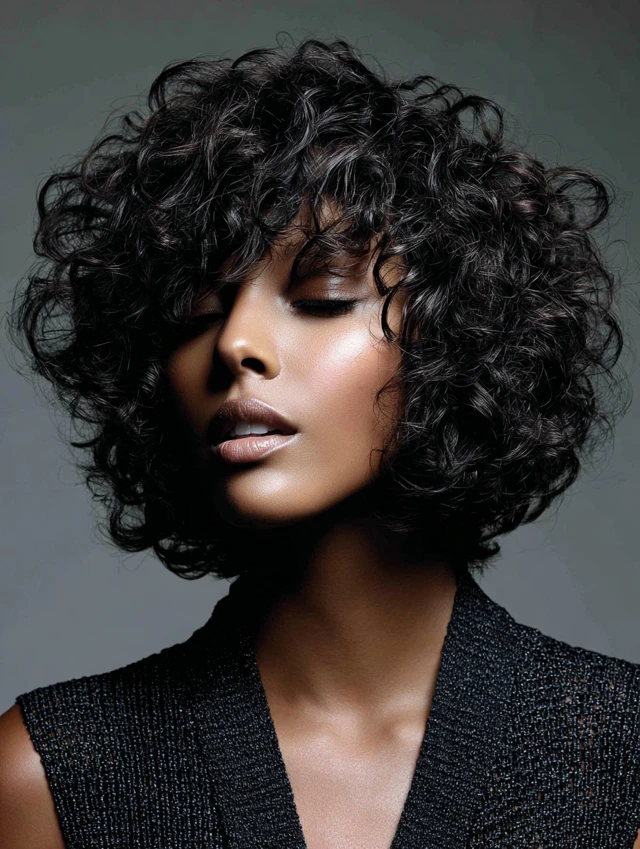 Chin-length curls frame the face beautifully while being low-maintenance.