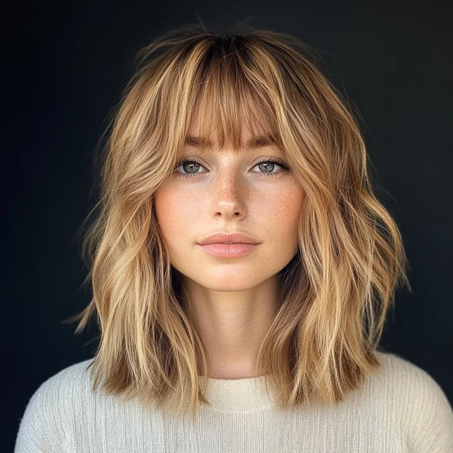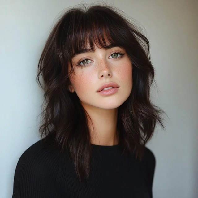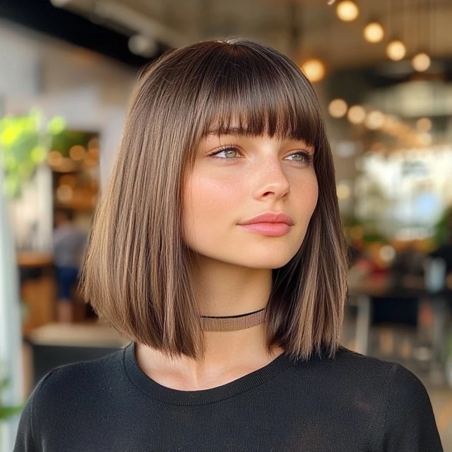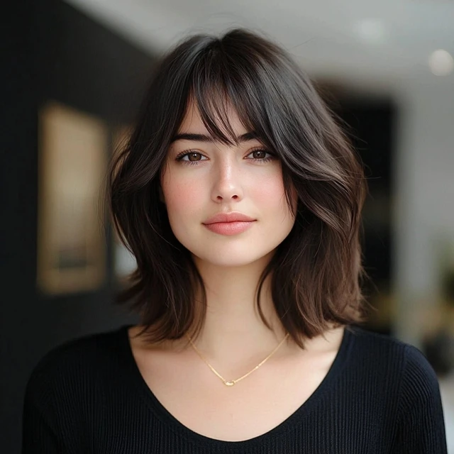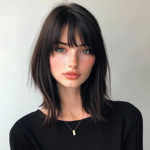Shoulder-length hair with bangs isn’t just a style—it’s a statement. It says you know who you are and you’re not afraid to show it. Whether you go for bold blunt bangs or soft wisps that whisper across your forehead, this look works because it’s versatile, chic, and undeniably fresh.