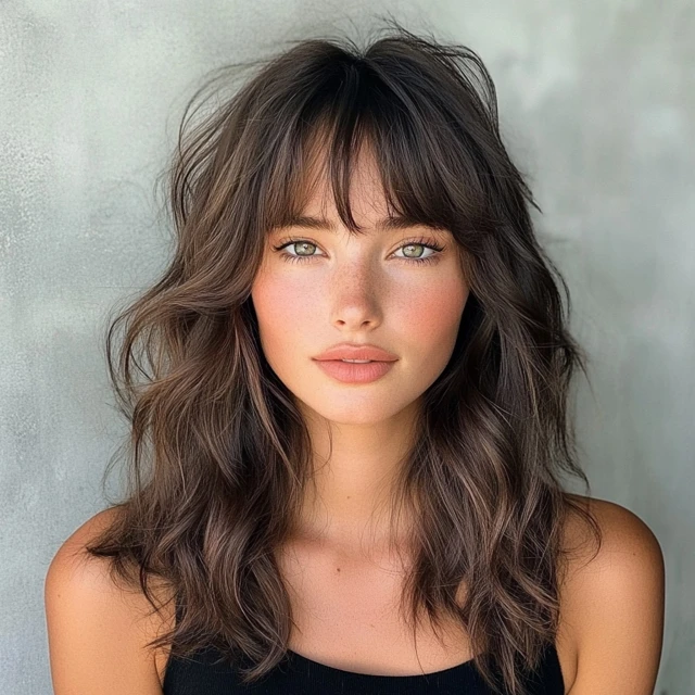 Why It Works: Romantic and effortless—curtain bangs blend into waves seamlessly.