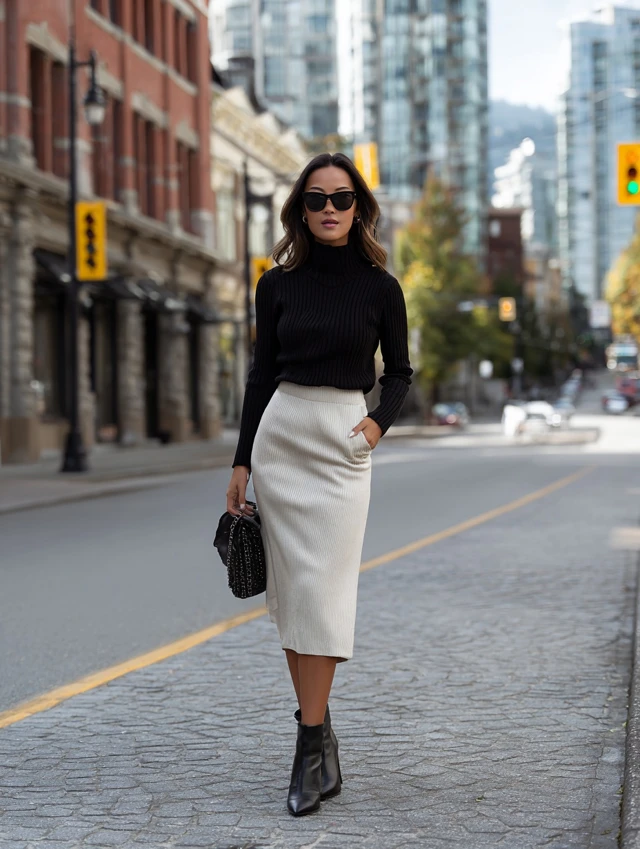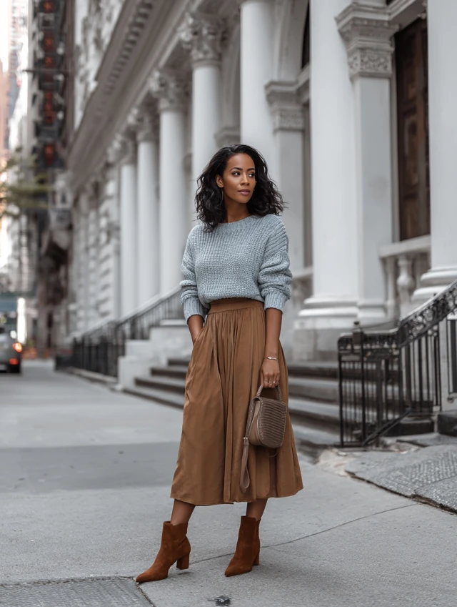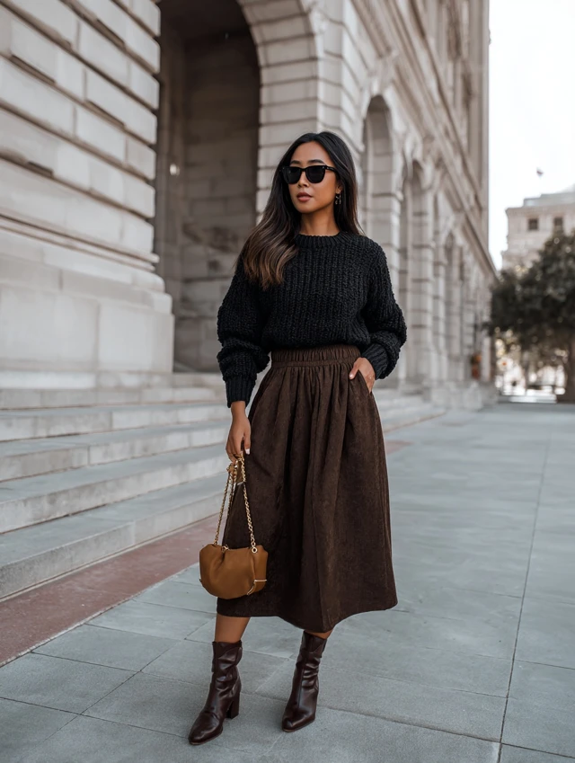 3. Midi Skirt + Fitted Sweater
