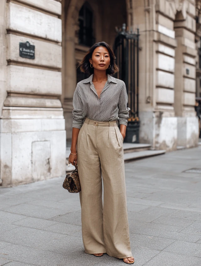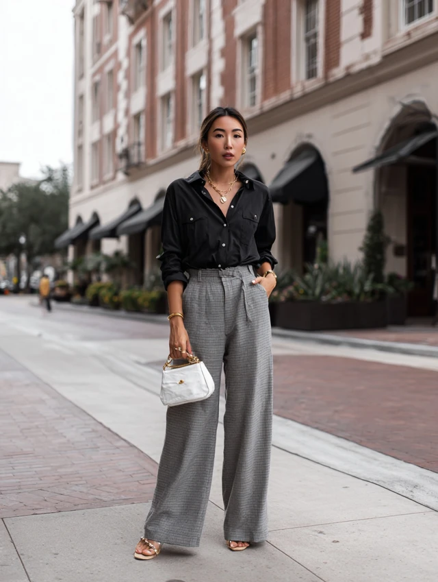 5. Wide-Leg Pants + Button-Down Shirt